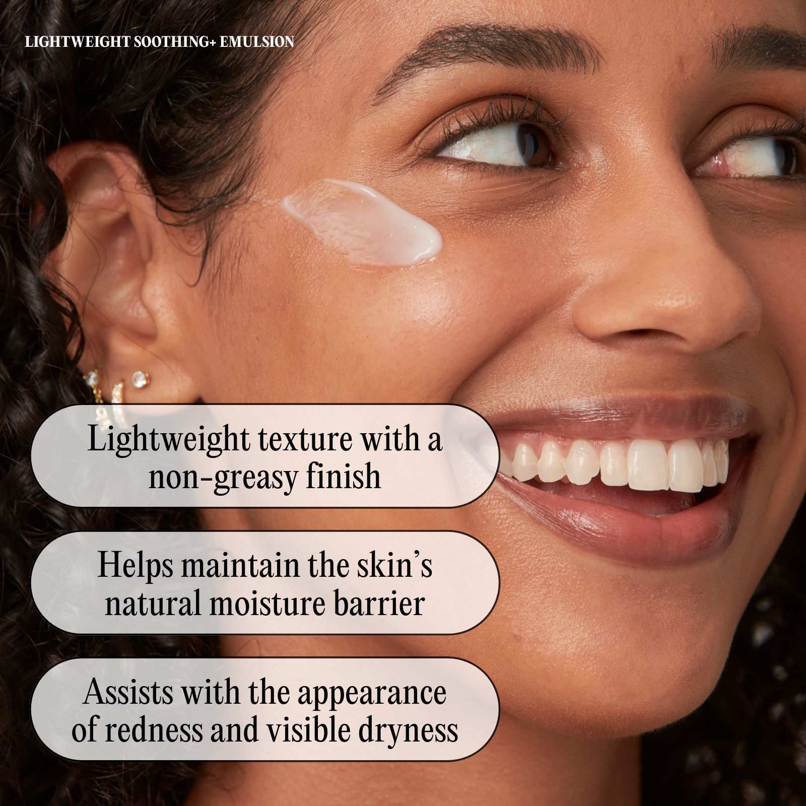 AMPERNA® Lightweight Soothing+ Emulsion contains a postbiotic, ceramides, hyaluronic acid and emollients to help nourish the skin and protect it from free radical damage.